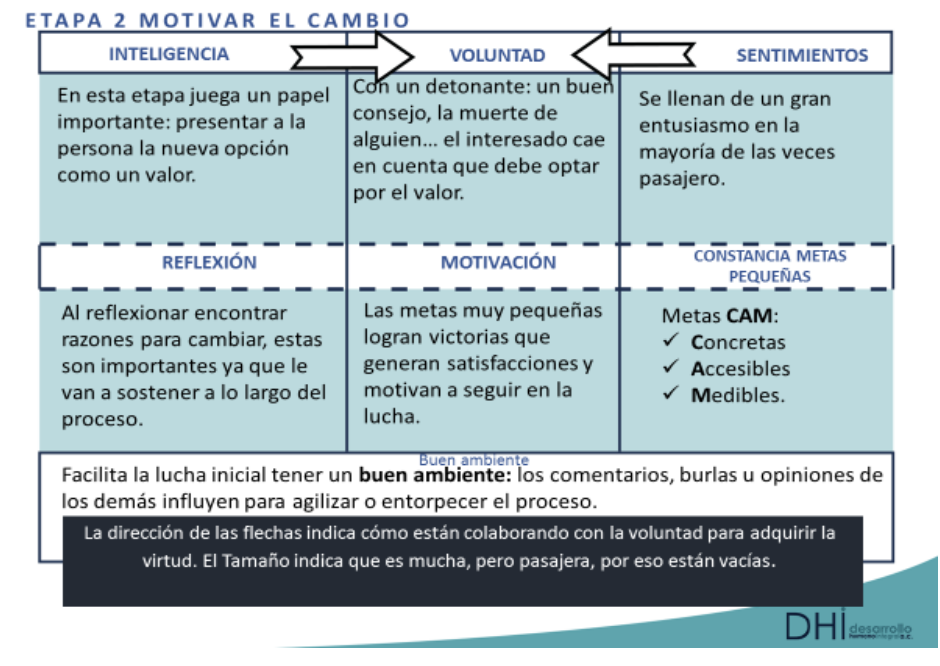 hábitos buenos o virtudes. Durante su proceso, explicado en el presente documento,