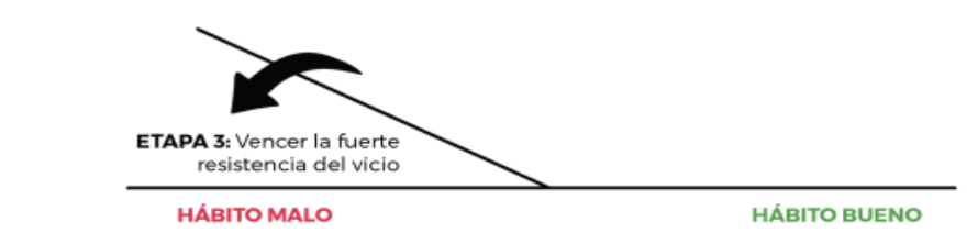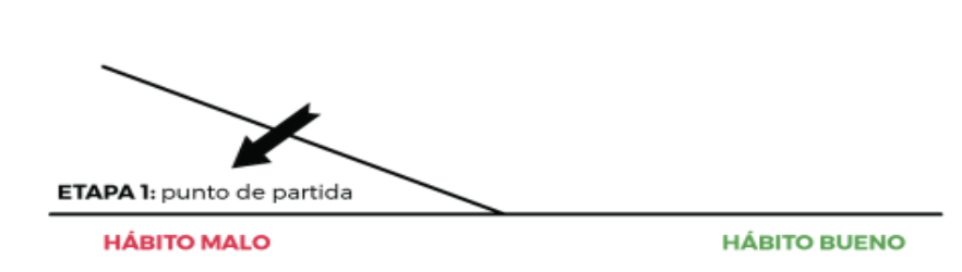 En el esquema del plano cartesiano se observa que ya está del lado del buen hábito, aunque aún se puede seguir creciendo: la flecha está grande y negra, señalando que ya se tiene el nuevo hábito.
